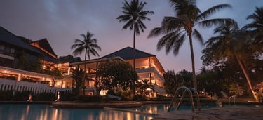 Resort frente al mar con estilo elegante, vistas al océano y ambientes relajantes.