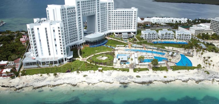 Todo incluido junto a la playa con múltiples piscinas, actividades y entretenimiento.